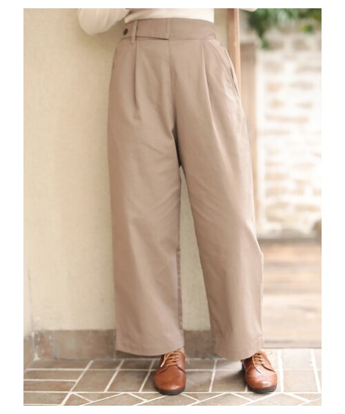 今季トレンドの大人ベーシックスタイルが叶うグルカパンツです。 股上が深いデザインなので、すっきり脚長に見えつつ、後ろのウエストはゴムなので楽らくな着心地です。2つのポケットも機能的で嬉しいですね。 お仕事着にもお出かけにも使いやすい1枚です。