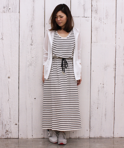 Discoat (ディスコート) しなやかな肌さわりのマキシワンピース☆ウエストリブ仕様でブラウジングでき、こなれ感もぐっとアップします。ドローストリングのゴールド使いもポイントに。コットン100%なので、汗をかく季節も清々しくきていただけける、プチプラワンピです♪ ※画像の商品はサンプルです。 実際の商品と仕様、加工、サイズが若干異なる場合がございます。 model:身長159cm 着用サイズ:フリー