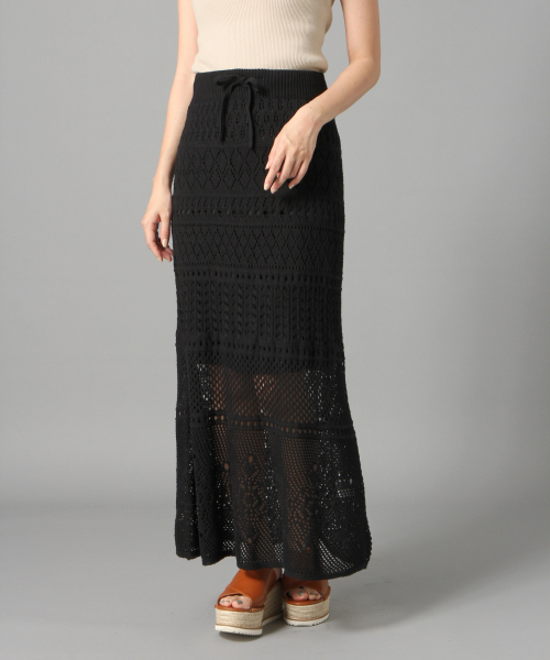 夏らしいかぎ針編みスカート透け感がかわいいかぎ針編みのニットロングスカート。程良いフレアデザインになっており、ペチコートとスカートが別になっているので、パンツと合わせてレイヤードスタイルでも着て頂けます♪暑い季節も着心地の良いさらりとした生地感なのでこれからの季節にぴったりです!