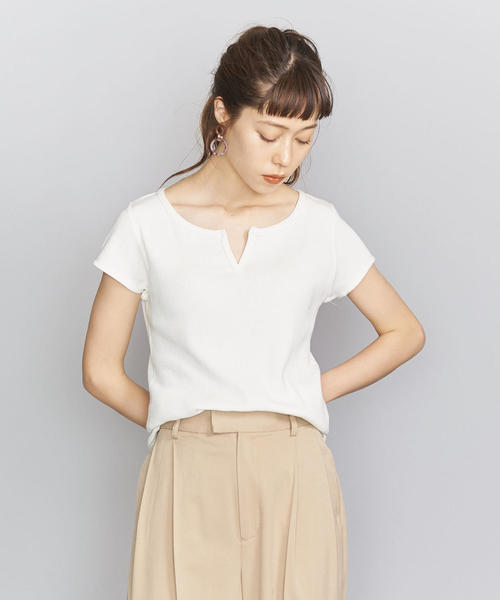 ソフトな風合いの甘撚りのコットンテレコ素材でお作りした、スキッパーネックTシャツ。適度なフィット感で心地よい着用感をお楽しみいただけます。広めに開いたスキッパーネックが女性らしいデコルテラインを演出。一枚着としてはもちろん、インナーとしても便利なアイテムです。色違いで揃えるのもおすすめ。店舗へお問い合わせの際は、全国のBEAUTY & YOUTH各店舗まで下記の品名/品番をお申し付け下さい。品名:BY C/TRC SKP TEE 品番:1617-699-5409