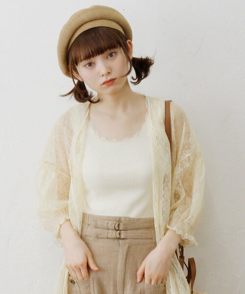 ベーシックなレース付きリブタンク。 伸縮性があり、着心地も抜群◎ 豊富なカラー展開なので色違いでの購入もおすすめです。 ブラウン、ダークブラウン、グレー、アイボリー、オレンジ、ピンク、パープル、レッドの8カラー。