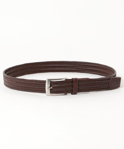 一見シンプルなレザーべルトに見えますが、細かい編み込みのデザインで高級感のある仕上がりに。カジュアルは無論、セットアップやスーツにも兼用でお使いいただけるモデルとなっております。