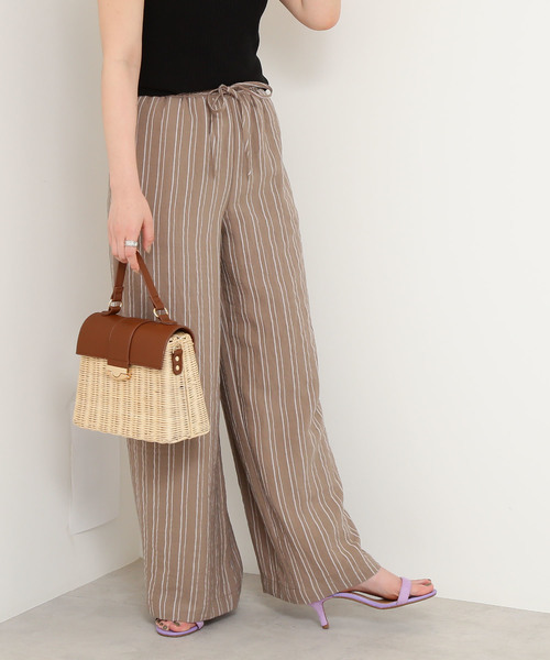 都会的リゾートな気分に浸れるイージーワイドパンツ。柔らかく軽い素材を使用、ウエストリボン&ゴム仕様でリラックスした穿き心地です。 色味により一部柄が違い、雰囲気がかわる仕上がりです。Tシャツから抜き襟シャツなどと、タウンから旅先までシーンに合わせて着られます。 ペタンコサンダルや夏小物でアレンジを楽しめます。 ※裏地有り