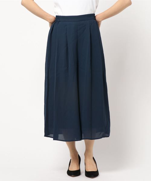 上品見えなのにノンストレスに穿ける。春夏に嬉しいシフォン素材軽やかなシフォンジョーゼットのスカーチョ。 ウエストシャーリングで穿き心地が良く、窮屈感を感じさせません。 スカートのような佇まいながら、パンツ仕様で安心です。 落ち着きのある膝下レングスなので通勤スタイルにもフィット。 シワになりにくくお手入れもしやすくなっています。 ウエストゴムの仕様でノンストレスな履き心地も嬉しいポイント。 ・裏地つき。