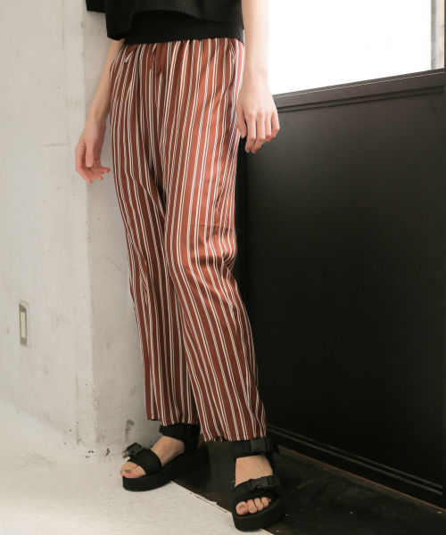 光沢感がかわいい♪ さらっと穿けて大人めな着こなしが楽しめるサテンパンツ。 ゆったりとしたサイズ感で楽に穿け、光沢のあるサテンが女性らしい印象に。 ウエストゴムでラクチンなのでこれからの季節、リラックスして着て頂けるパンツになっています♪