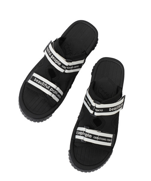 最終納品完了 これでラスト!!【beautiful people(ビューティフルピープル)】2019年最新 beautidul people×STUDIOUS知る人ぞ知る幻のサンダルブランド『SHAKA(シャカ)』も加えたトリプルコラボレーションが実現!ビニールバッグシリーズやガチャベルトと、beautiful people×STUDIOUSのアイコニックともなっているロゴテープを使用したサンダルが登場!1990年代当時のトレンドでもあったウェビングテープを使用したスポーツサンダルとして一躍ブームを巻き起こしながらも、2000年代に惜しまれつつ幕を閉じたサンダルブランド『SHAKA(シャカ)』のNEWモデル『CHILL OUT(チルアウト)』の型にデザインを落とし込みました。■トレンド性溢れるスライドタイプ!『チルアウト』の魅力タウンユースで使いやすいスライドタイプが人気のサンダルです。SHAKAオリジナル時代に存在した型を現代風にアップデートオリジナル時代にはシンセティックレザーのアウトドア風だったルックスを、アッパーをネオプレーン素材にアップデートしたことで都会的でファッショナブルになりました。すっと足を入れるだけで履けるラクさが病みつきになること間違いなし。アウトドアにも最適なネオプレーン素材ウェビングベルトの裏側には、ダイビング用のウェットスーツとしてよく用いられるネオプレーンを使用。存在感ある立体的なシルエットを作れるのが、世界中のモードブランドがこの特殊素材を取り入れ始めた最大の理由です。一日中歩く日やレジャーにも最適なので、お出かけが多くなるこれからの季節に一足は持ちたいアイテム。■コーディネート素足ではもちろん靴下と合わせても足元が引き立ちます。進化したSHAKAのサンダルをスタイル、履き心地共にぜひお楽しみください。【beautiful people】2007年、熊切秀典が中心となり「ビューティフルピープル(beautiful people)」をスタート。コンセプトは、服に袖を通すことでで、着た人にとって新しい刺激による思考の転換、日常に新たな視点、新たな価値観を提案。社会生活を向上させる事を目指す。【SHAKA】SHAKAは1990年代に実在した南アフリカ共和国のサンダルブランドです。南アフリカ国内の自社工場にてハイクオリティーで独創的なデザインのサンダルを製作していました。2000年代前半に惜しまれつつ消滅してしまいましたが、十数年の時を経て遂に復刻しました。進化して復活した今後要注目のサンダルブランドです。