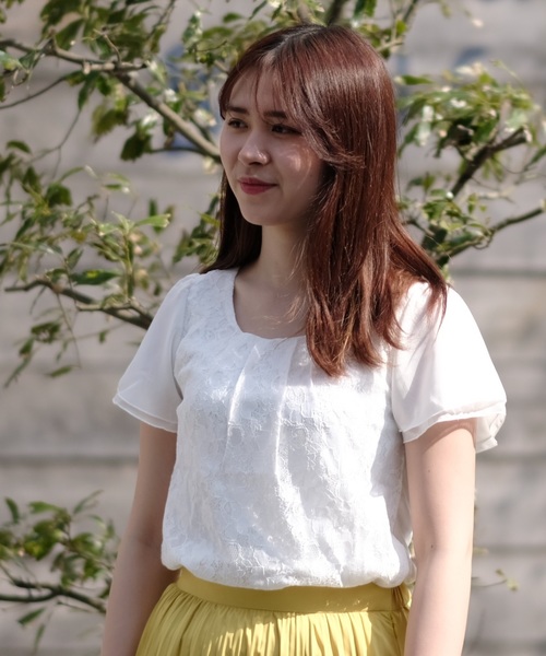 繊細な花レースを全面にあしらった上品さのあるカットソー。袖がシフォン使いで、軽やかな雰囲気を演出します。ジャケットのインナーとしても着やすいので通勤・オフィススタイルにも使える万能アイテム。1枚着としてや、サマージャケットのインナー用途、秋口までと長くお使い頂けます。【シルケット加工】 綿の光沢・染色性・形態安定性・平滑性を向上させる加工です。シルクのような上品見えする、きちんと感ある印象に。【TRUDEA(トルディア)】by Astoria(アストリア)毎日着るものだからこそ素材や着心地にこだわりを!洗練されたデザインに程よいトレンド感をMIXした働く女性のワードロープを提案します。ベーシックなデザインなので、通勤やオフィスでのお仕事スタイルに◎ビジネスなどのオンスタイルや、コーディネートするアイテム次第で、きちんと感を出しながら、カジュアルダウンしたスタイルやオフスタイルにも◎洗濯:手洗い可