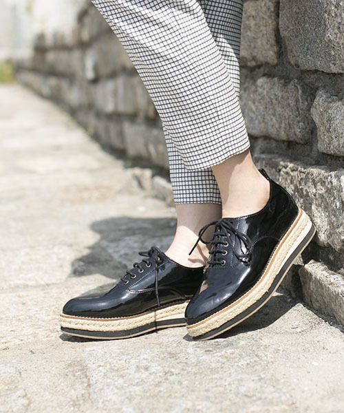 ■マニッシュなルックスが旬なデザインシューズ■ レースアップデザインでマニッシュに仕上げたシーズンムードなシューズ。ジュートソールで軽やかなルックスが春夏らしい1足です。 存在感のあるプラットフォームデザイン メンズライクなレースアップシューズにシーズンムードを盛り上げるジュートソールのプラットフォームを加えることで存在感のあるフォルムデザインに。異素材ミックスなフォルムは足元を華やかに演出してくれます。歩き易くスタイルアップも叶うのでデイリーシーンに活躍しそう。 パンツからスカートまで幅広いシーンに活躍 トレンドが詰まったデザインシューズだからどんなコーディネートもこれ1足で旬なコーディネートが完成。タックパンツに合わせてマニッシュなスタイリング、マキシスカートにプラスしてリラックスムードなスタイルなどコーディネートによって様々なテイストに決まる優れものです。 【Sentore Amaranto】(セントレアマラント) 店舗にて在庫をお探しの際は、下記の①、または②の品番を ナノ・ユニバース カスタマーサービス:0120-70-5088(対応時間 11:00~18:00) へお申し付けください。 ①9999145276124 ②2694-2018-9 ※画像の商品はサンプルです。 実際の商品と仕様、加工、サイズが若干異なる場合がございます。