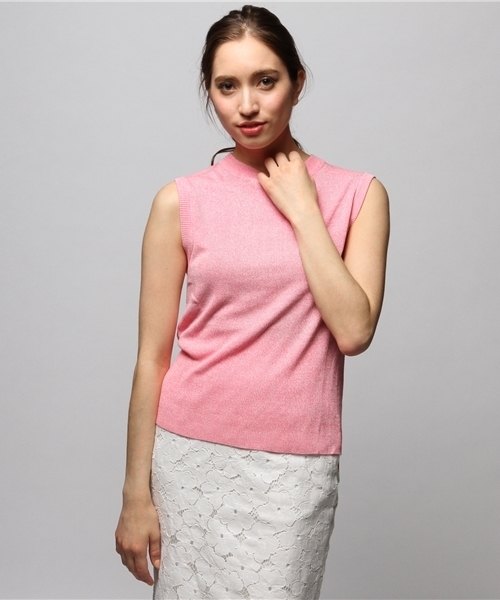 レーヨンシルクニット しなやかで軽い着心地のレーヨンシルクトップス。 女性らしいシルエットを醸し出す一枚は、ノースリーブで今風詰まったネックラインがポイントに、一枚やインナー使いとして重宝します。 model:H167 B82 W59 H86着用サイズ:FREE