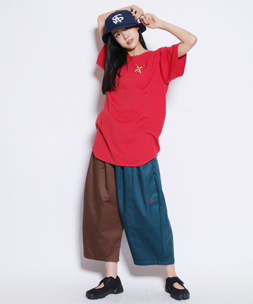 様々な想像を膨らませるXモチーフのグラフィックを刺繍で胸元に配置したビッグT。身頃は両サイドではなく背中の中心で生地をはぎ合わせ、ラウンドさせた裾とのバランスも良いシルエットになっています。COTTON×COOLMAXのプレーティング天竺を使用したオリジナルボディは、高機能素材の着心地とコットン素材ならではの表情を共存させています。S・Mの2サイズ展開です。