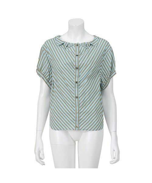 薄手のコットン素材を使用したストライプの半袖ブラウス。パフスリーブとバイアスに入ったストライプがポイント。Torso:H163.5 B80 W58.5 H86 着用サイズ:01サイズ