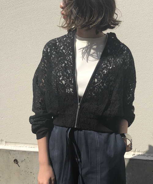 繊細なディテールに目を奪われるロマンティックなブルゾン 繊細なレースで切り替えを施したレース仕様のブルゾン。 程よい透け感が女性らしさを引き立てます。 デニムスタイルに合わせても女性らしく、ロングスカートでモードに仕上げるのもおすすめです。