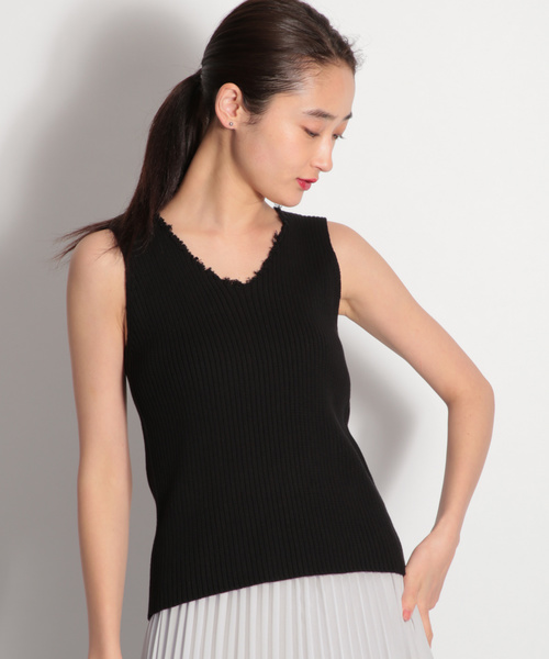 襟ぐりのダメージ感が可愛い、niko and ...人気のホヅホヅアイテム。 開きすぎないVネックで、すっきりと大人っぽく着こなせるニットタンクです。 生地感はやわらかく伸縮性があり、また程よく厚みがあり透けないので、デイリーに取り入れやすい一枚。 フレアなボトムスやライトアウターを合わせて、抜け感のある着こなしが◎