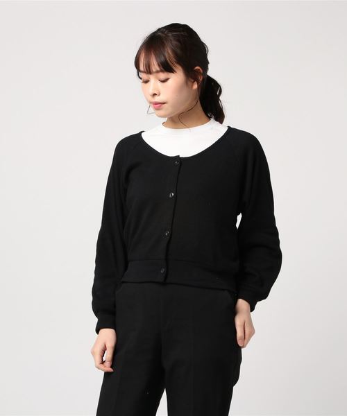 少し薄手で柔らかいワッフル生地が気持ち良いカーディガン。さりげないバルーン袖がかわいい。襟が広くショート丈なので、ワンピースやワイドボトムに前を空けてサッと羽織るだけでこなれた印象になります。両面着用可能。