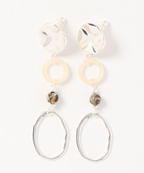 シェル×金属×アクリルパーツMIX華やかなロングイヤリングです。 長時間着用しても痛くならないシリコンカバー付で、 光沢のあるシェルが女性らしさを演出します。