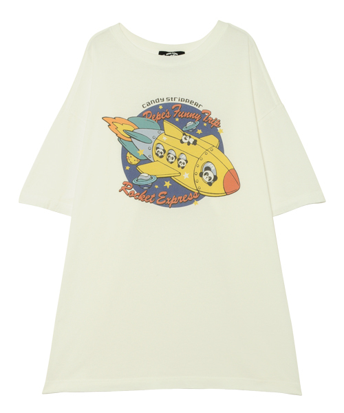 ロケットに乗ったPEPEのプリントが可愛いBIG TEE。程よいゆるシルエットで、メンズライクな着こなしや、ミニワンピース風の着こなしにもおすすめです。
