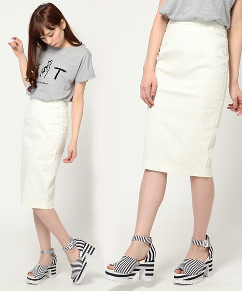 今季はミッドカーフ(ふくらはぎ)丈ペンシルスカートが断然お洒落☆ウエスト周りはスッキリした仕様で、トップスINでもOUTでもどちらでもOKです!ストレッチも効いているのでとても履きやすく、着回しできるアイテムなのでおすすめです♪