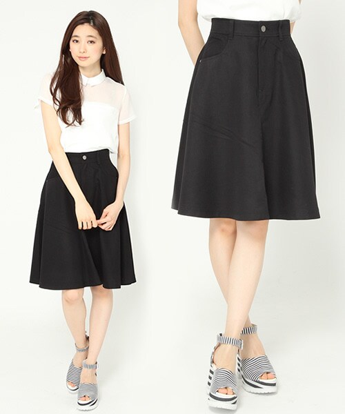 ミディ丈が大人っぽいフレアスカート。スカートが苦手な方でも、このスカートなら甘くなりすぎずにコーディネートできます!トップスはトレンドのショート丈、もしくはスカートにINしてすっきりさせるのがおすすめ★