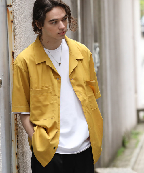 ドライタッチで快適。シンプルながらも一枚で決まるオープンカラーシャツさらっとした肌触りのポリエステルを使用したオープンカラーシャツ。 ややビッグシルエットでストレッチも効いていて着心地も良いアイテム。 薄手で表情のある素材感が、シンプルながらも存在感のある一枚に。
