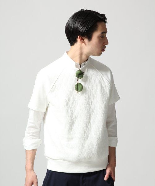 フロント部分をキルティング生地で切り替えしたデザインスウェット。ラグランスリーブのデザインにしており、リラックス感のあるゆったりとしたシルエットでストレスフリーな着心地に仕上げました。半袖なので一枚でももちろん、長袖や半端袖のシャツとレイヤードしてもお使い頂けるデザインです。