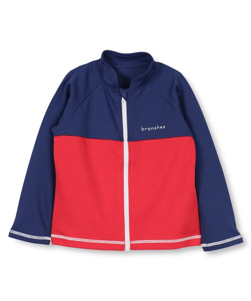使いやすいカラー配色がポイントのラッシュガードです。胸元のロゴ・ファスナー・ステッチカラーも配色にすることでシンプルすぎずちょっとしたアクセントにしています。表面に凹凸感があり、肌に触れる面積が小さいため清涼感があり通気性にも優れています。UVケアアイテムとして水遊びに最適です。ジッパーしまいの縫製仕様でチャックの引き手が当たりにくくなっております。