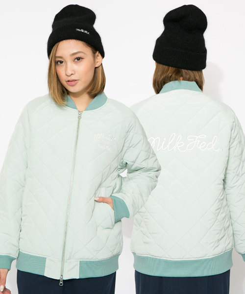 EC限定プライス! 流行りのシャイニー素材をキルティング加工し、変わりMA-1ジャケットのようなスタイルに。ミントグリーンは、トレンドカラー! ※画像の商品はサンプルです。 実際の商品と、仕様・加工・サイズなどが若干異なる場合がございます。 モデル身長:161cm 着用サイズ:S