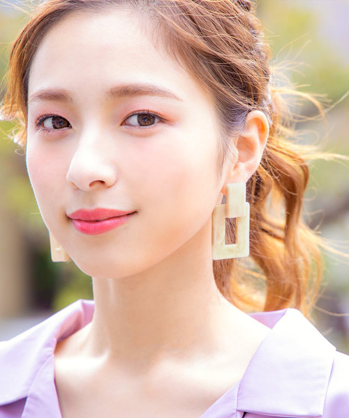 大ぶりで存在感たっぷりのマーブルスクエアピアス。マーブルの風合いが春夏のシーズンムードをぐっと盛り上げます。顔周りを華やかに演出してくれるアクセサリーは1つは持っておきたいITEM。 【素材・サイズ感】動きに合わせて揺れる大きなスクエアが目を惹きます。トレンドライクなナチュラルな風合いに大人の遊び心あるデザイン。ボリューミーなのに重たくないのも嬉しいポイント。キャッチ部分はゴールドの真鍮でさびにくいので、お手入れしやすいです。ブラウンは透け感がありべっこう柄の様な色合い、アイボリーは大理石風で洗練された大人の雰囲気を醸し出します。 【スタイリング】いつものコーデにプラスするだけでおしゃれに差が付きます。どんなコーデにもマッチし、華やかさをプラスしてくれるワンポイントになります。普段使いはもちろん、リゾートやプール、パーティーでも写真映え間違いなし◎