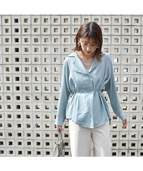 ◆アイテム詳細◆ 【 Marient S/S 2019 】 トレンドの開襟シャツデザインで、サテン地を使用しアイテム全体に表情のある生地の使い方をした、ヴィンテージ感のある雰囲気のブラウスです。 肌に優しい自然な質感に、優雅な光沢と発色性が特徴。 軽やかでしなやかなドレープ性と、適度な吸湿性と速乾性がある素材です。 薄手のサテン地なので、ジャケット感覚で羽織りとしてもお使いいただける便利なアイテム。 上品な光沢感と落ち感があるので、カジュアル使いやちょっとしたパーティーなどにも、様々なシーンで活躍します。 【 Marient S/S 2019 】 ーーーーーーーーーーーーーーーーーー 【COLOR】ベージュ・ブルー 【SIZE】Fサイズ 平置き(㎝) 着丈70 身幅50 肩幅42 袖丈54 裾幅55 【素材】本体 ポリエステル100%