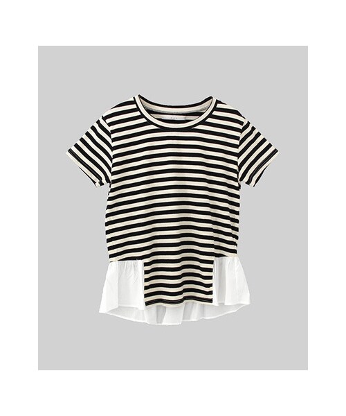 ベーシックなTシャツの裾のサイドを、フレアーなシャツに切り替えぺプラムシルエットに。カジュアル過ぎない少しガーリーなデザインは、デニムやチノパンでメンズライクなスタイルも◎パンプスやサンダルで可愛く合わせてみて。※ 繊維の表面が着用中にこすられたりすることで毛玉ができやすくなっておりますので、お取扱いには十分ご注意ください。また、摩擦や汗・雨に濡れた状態での使用により、他の衣料等に色が移る場合がございますので、十分にご注意ください。※詳しい洗濯方法については、商品の品質表示タグをご覧ください