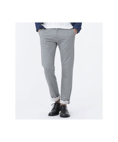 目の詰まった表面に光沢のあるニット素材を使用した5ポケットパンツです。国産の毛羽のない綺麗な裏毛ジャージーを使用しているので、細身のパンツですが非常に動きやすいデザインです。スッキリとしたシルエットでスポーティすぎない雰囲気に仕上げています。【素材】綿100%
