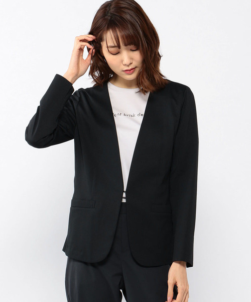 ファッション性と機能性を兼ね揃えた逸品 モダンな雰囲気に着こなせるノーカラージャケットです。 吸水速乾性に優れており、 UVケアや接触冷感機能を搭載したソルディフェンダー素材が これからの季節にぴったりな1着。 スッキリとした印象を与えるフロントホック仕様です。 モデル身長:165cm 9号着用 商品詳細のところにある【ハートマーク】をクリックして、 お気に入り登録をしてくださいね! 嬉しいお知らせが届くようになりますよ!