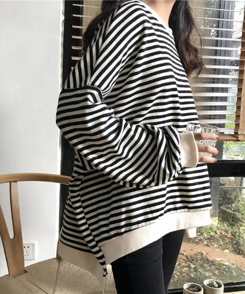ボリューム袖がカワイイ!!体型カバーもデキちゃう定番スウェットアイテム◎!! 1つは持っておきたいアイテムのスウェットシャツ。定番のボーダーデザインだからこそ、ボリューム袖で差をつけちゃおう!!柔らかい肌触りの生地が気持ちよく、長めのバックスタイルで、気になるヒップもカバー。さらにフロントはショート丈デザインで、パンツやスカートにも合わせやすく、脚長効果も期待できる、優秀アイテムです◎ 詳細補足伸縮性:あり 透け感:なし 裏地:なし 厚さ:普通 サイズ感:ややゆったり 光沢:なし【c.u.l】▼お気に入り登録をおすすめします▼♡をクリック!お得なセール情報や、人気完売商品の再入荷情報ラスト1点の通知など、耳寄りなお買い得情報をいち早く受ける事ができます。ブランド【c.u.l】のお気に入り登録もご一緒にお願い致します。取扱注意事項※サイズは、測定方法と測定者によって多少の誤差がありますのでご了承下さいませ。 また体型によって、サイズ感に個人差がございます。(平置き採寸)※商品によってはシワがつきやすく、畳ジワや折りジワなどが強く出る場合がございます。 その際は加湿した風呂場に数時間干すか、スチームアイロンでのお手入れをお勧めしております。※生地の素材上、においが気になる場合がございます。 その際は陰干しして頂くと、ほとんど感じられなくなります。※レース等の繊細な素材を使用している場合には、お取り扱いにご注意下さい。※お洗濯の際には、洗濯専用ネットをご使用の上、個別での洗濯ををお勧め致します。 お色物は、色移りする可能性がございます。※着用画像は撮影状況や光によって、多少異なる場合がございますので、置き画像をご確認下さい。
