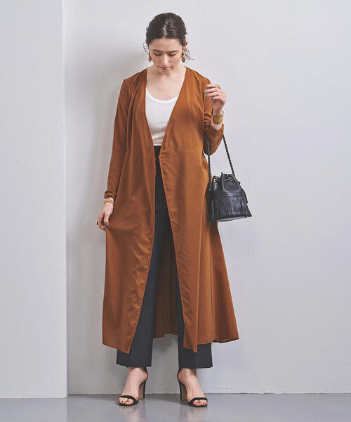 女性らしいカシュクールデザインのマキシ丈のワンピース。 上品な光沢感と透け感のあるフレアシルエットは軽やかな印象。 前をとめてワンピースとしても、ボトムスを合わせて羽織りとしても2WAYで着こなしを楽しめます。 ※ ご自宅でのお洗濯の際は、洗濯表示を必ずご確認ください。 店舗へお問い合わせの際は、全国のUNITED ARROWS各店舗まで下記の品名/品番をお申し付けください。 品名:UBCS C/PE CACHE FLA 120 品番:15272151616