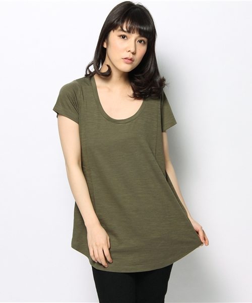 Loungedress(ラウンジドレス) シンプルなTシャツは、軽くて着心地の良いスラブコットンを使用しているので、シンプルなのにエレガントなデザインのTシャツ。これからの季節に色違いで持っておきたいマストアイテム!
