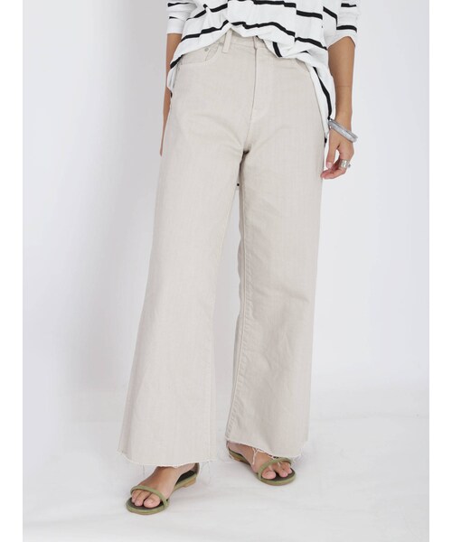 ナチュラルなカラーをベースにしたワイドシルエットのデニム。裾にはカットオフを施し、よりカジュアルな印象に。【スタイリング】今季ならではのナチュラルカラーのワントーンコーデがオススメ。少し大人な雰囲気でデザインニットと着合せてカジュアルアップしたスタイリングがマッチします。