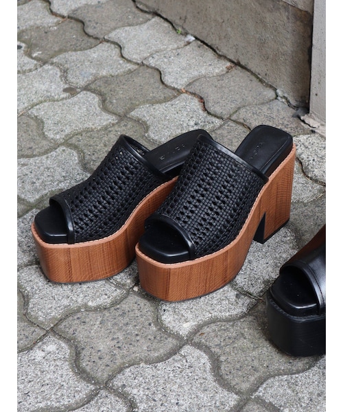 スタックヒールを使用したバルキーサンダル。インソール部分にも厚みを持たせ、安定感を出しています。ソールもウッド調で夏まで使いやすい1足です!リラックスワンピからデニムまでコーデを選ばず履ける優秀サンダル。