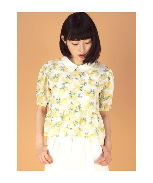 今シーズン絶対外せないフルーツ柄。中でもレモン柄はレトロ&シックで上品に着こなせます。ぺプラムシルエットでスタイルアップ効果も。