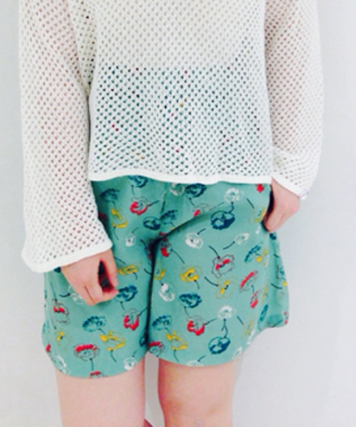 Kastane(カスタネ) ウエストはゴムになっており、ゆったりとしたシルエットでらくちんかわいく着て頂けます。ハーフパンツという長さが新鮮☆同素材でお作りしたビスチェとセットアップで着るのもオススメです♪