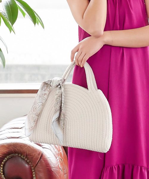 トレンドなハーフムーンバッグ。ロープ素材が春夏らしいシーズンムードを盛り上げ、女性らしいフォルムながらカジュアルな雰囲気に。タッセルチャームが遊び心をプラスしてくれます。 【素材・サイズ感】ロープの柔らかい持ち手は腕にかけても痛くならないのも魅力的。高さがしっかりとあるので、見た目以上の収納力。 【スタイリング】カジュアルからきれいめまで相性◎の鞄です。大人の品格をグンと上げてくれるオススメアイテム。シンプルで爽やかなコーデに合わせるとこなれた印象に。