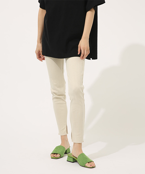 柔らかくリラックスした履き心地が魅力のWIDE RIB LEGGINGS。チュニックトップやワンピースと合わせて、トレンドのレイヤードスタイルが楽しめるカット素材のレギンスです。裾にはスリットが入っており、足元に抜け感をプラスしてくれるところもポイント。しっとりとしたタッチで肌触りが良く、デイリーで重宝できるアイテムです。<br>■BLK 着用モデル身長160cm:着用サイズM<br>■L/BEG 着用モデル身長160cm:着用サイズM