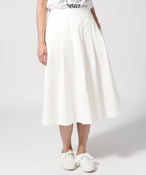 人気のミディロングスカート☆新作のこちらは、軽やかな印象の1点です。ウエスト部分にもデザインがはいっているので、ウエストインのスタイルもオススメ!今年トレンドのクロップド丈のトップスとも相性◎!張り感のある素材なので体のラインを拾わず、Tシャツなどと合わせてもカジュアルダウンしすぎずにスタイリングが楽しめるアイテムです。