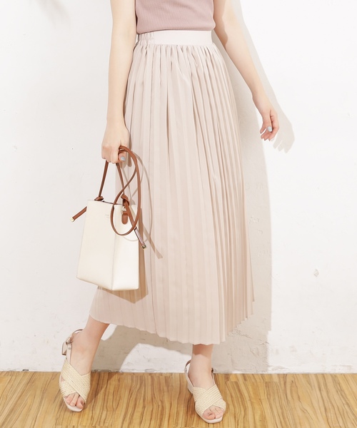 【2019SS natural couture】豊富な色展開が楽しい!すっきりシルエットのプリーツスカート 広がりの少ないスッキリとしたシルエットのプリーツスカート。すとんと落ちるラインはボリュームのあるトップスもコンパクトなトップスも相性抜群!どんなアイテムとも合わせやすい1着です。可愛いお値段と豊富な色展開にも注目!他にはない小紋柄のアイボリーとブルー系その他、シックなブラック、赤みのあるオレンジモカ、くすんだピンクのようなグレイッシュベージュ、柔らかな印象のサックスブルーをご用意しました。ウエストはインしても美シルエットを叶えるバックゴムを使用。着回し力の高いプリーツスカートは何着も欲しくなっちゃう!