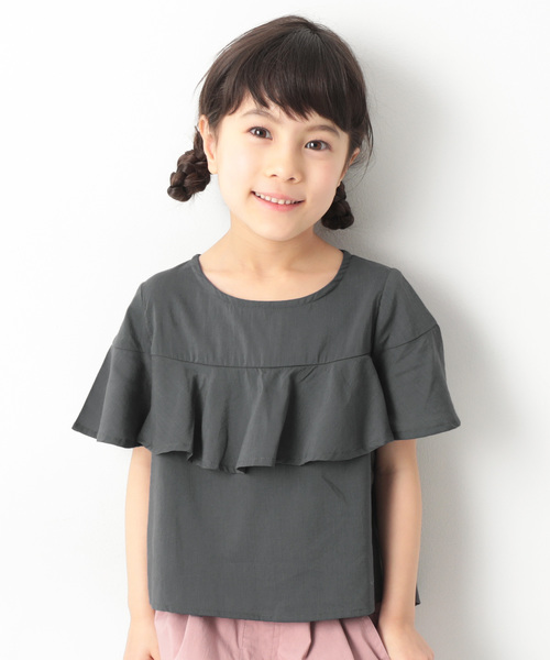 動く度にふんわり揺れる『胸フレアブラウス』シンプルながらも胸元のフレアが大人っぽくトレンド感のある印象を与えてくれます。裾に前後差があり、ラウンドシルエットになっているのでトップスをインしやすく様々な着こなしにフィットします。キッズからジュニアまでをカバーする100cm~160cmまでの豊富なサイズ展開になっています。同素材でセットアップとしても着用できるアイテムをご用意しております。■素材■夏に最適、涼感のある綿レーヨン素材さらりとした肌触りで程よい落ち感のある綿レーヨン。吸水性があり、毛羽立ちにくく、洗濯後も表面の滑らかさが続くという特徴があります。■ディティール■・背面には着脱しやすいボタン付き・便利なお名前タグ付き・丈夫な縫い付け・前後で長さが異なるデザイン