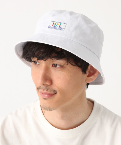 MEI×GLOBAL WORKシンプルでベーシックなデザインのバケットハット。適度なツバの広さでデザイン性と日よけの実用性のバランスがよいです。他位にはないマルチカラーのコラボタグを使用しており、デザインのアクセントにもなっています。