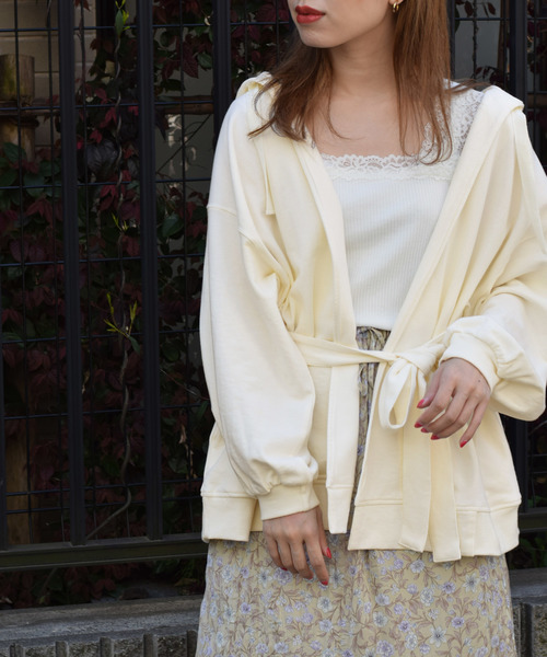 定番パーカーはデザインで差を付けて 人気のスウェットパーカーがガウン仕様になって登場です。ドロップショルダーにワイドな袖が旬なデザイン。抜き襟でゆるっと羽織るだけでこなれ感のある着こなしに。共布ベルトでウエストマークするとガウンのようなシルエットが楽しめます。肌触りのよい裏毛で着心地もバツグンで、サイドにポケット付なのも嬉しいポイント。定番アイテムをブラッシュアップしたデザインは、いつものコーデのアクセントになること間違いなし。 スタイリング カジュアルなアイテムなのでガーリーテイストをプラスするのがおすすめ。今季人気のフレアスカート×サンダルでアクティブなスタイルが◎。ワンピースなどにガウンとして羽織るとカジュアルながらも大人っぽい印象で着ていただけます。 【お買いものにおすすめの便利機能!】 ★商品のお気に入り登録 完売カラーの再入荷の時や、ラスト1点の時、セールになった時にお知らせします。 ★ブランドのお気に入り登録 新商品や再入荷、セール情報など、いち早くブランドのお得な情報を受け取ることができます。 ぜひご活用ください!
