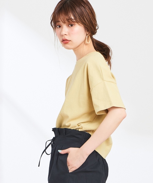 【2019SS natural couture】メンズライクな生地にボックスシルエットがこなれたTシャツ厚手の生地感のシンプルなTシャツが登場です!大きく肩線を落としたドロップショルダーに、ボックスシルエットがこなれた印象を与えます。コンパクトな丈感なのでウエストをINせずに着るのがオススメ!トレンドのマーメイドスカートとの合わせはもちろん、サロペットのインナーやワンピースの上からお召頂いても◎大きめの身幅と袖幅が蒸し暑いこれからの時期にも風通しが良く、快適にお召いただけますよ。お色はシンプルで合わせやすさNo,1のオフホワイト、褪せた風合いがこなれたスミクロ、トレンドの大人かわいいベージュ、1枚で垢ぬけるくすみイエローの4色をご用意しました。これからのシーズンに重宝するシンプルなTシャツはマストバイアイテムです!