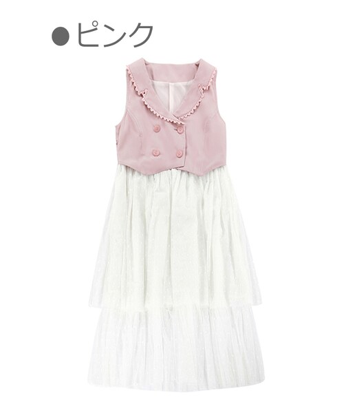 ♡2019SS New Collection♡ ベスト+スカートのフェイクデザイン 実際は上下一体型のロングジレだよ 春のレイヤードコーデに大人気 キリッとしたベスト部分で正統派アピール チュールスカート部分は 柔らかい雰囲気出すドットチュールで2段構造 中にTシャツ&スキニーを合わせると カジュアル寄りなコーデになるよ 「ピンク」と「黒」の2色展開