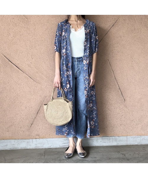 大人気のキーネック花柄ガウンワンピースの春夏バージョンが登場! 5分袖に袖丈が変化し、これからの季節により長くお使いいただけます。 ヴィンテージ感漂う花柄をのせたキーネックデザインで、テロっと落ち感のある生地感で楽に着用でき、ウエストを紐で結ぶ事で綺麗なシルエットが完成する1枚です。 一枚ではもちろんボトムとのレイヤードスタイルもおススメでカジュアルにも着こなせる今季押さえておきたいアイテムです☆ ※モデル身長:161㎝ ◆クリックポストにて代引きをお選び頂いた方は、390円プラスさせていただき、ゆうパックの代引きにて発送させていただきますのでご了承下さい。 ◆カラー ベージュ・ブルー・ブラック ◆サイズ 着丈:115cm 肩幅:37cm 身幅:96cm ウエスト:74cm→96cm 袖丈:30cm ◆素材 ポリエステル100% ※初めて着用する際、ボタンが外れにくい場合がございますが不良ではございませんので予めご了承ください。