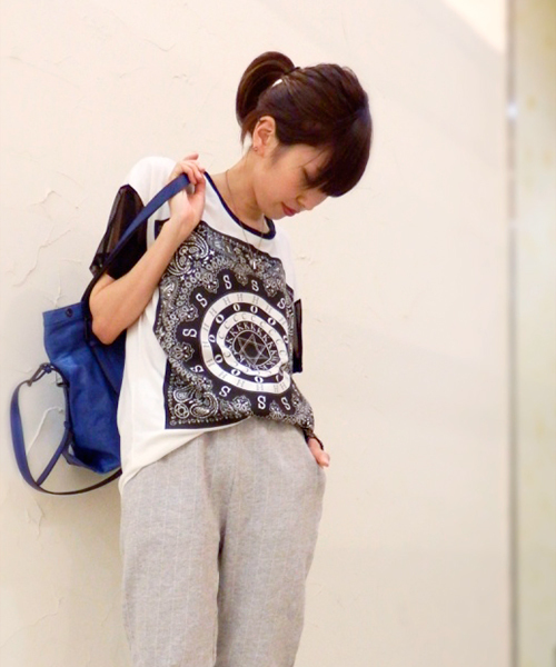 フロントに大胆に掲げたバンダナプリントが、インパクトたっぷりに映えるTシャツ。 袖は素肌見せのメッシュをコンビにして、高感度な着こなしを演出。 ネックや袖の配色使いも、モードな個性とメリハリ感を与えます。 ヒップまでかかるチュニック丈なので、スタイルカバーしつつ旬なこなれバランスもメイク◎ one size only model:H160 B78 W59 H82 着用サイズ:MEDIUM 大好評サマーセール開催中!セール会場はこちら★