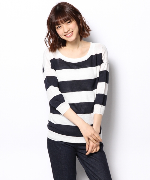 麻100%の清涼感あるボーダートップスです。 ボトムを選ばないボーダーでコーデの幅も広がります! model:H168 B80 W58 H84 着用サイズ:1
